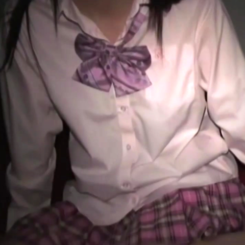 ピンクチェック制服ではおっぱいを揉み揉みしながらのオナニー。