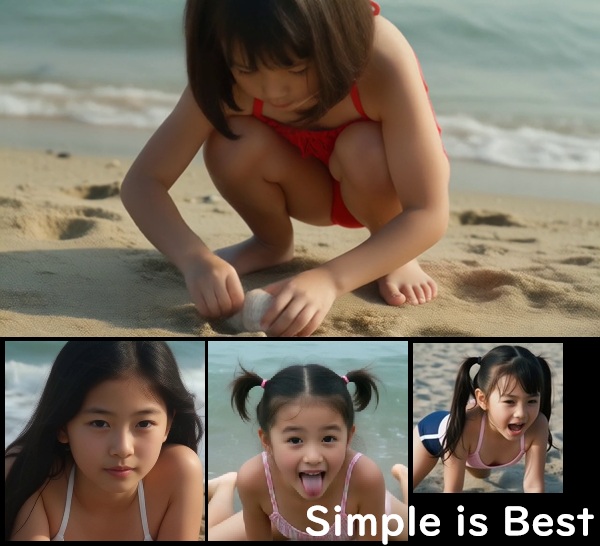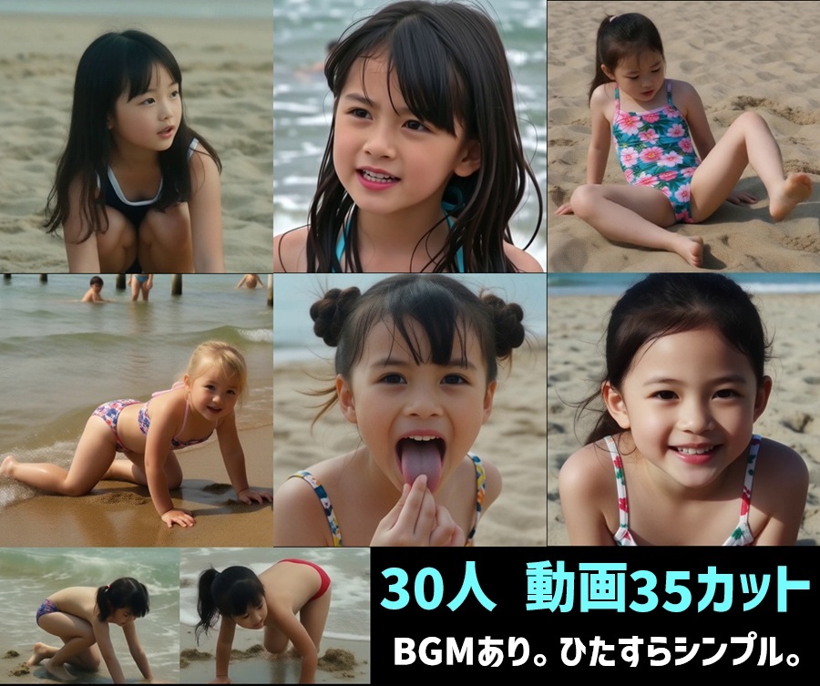 ひたすらビーチで戯れる水着幼女を30人、ご覧いただくだけです。