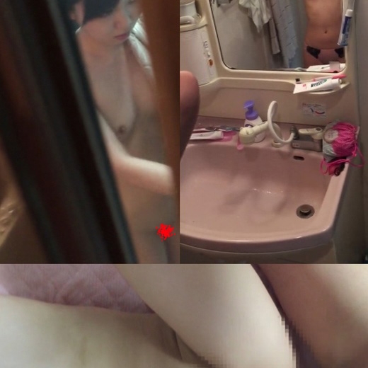 男が、シャワーを浴びる女の子を、脱衣所から盗撮風に撮影して、