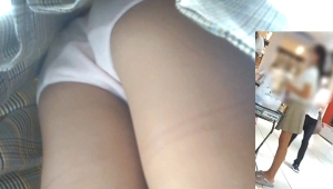 可愛いチェックミニスカの中身、純白なもこもこ綿パンをいっぱい見せてくれます。