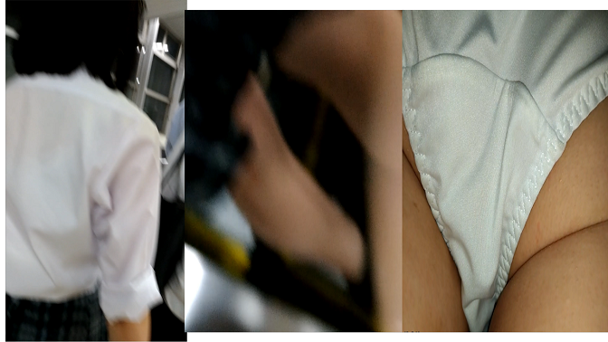 エスカレーターにて、制服姿の女の子。