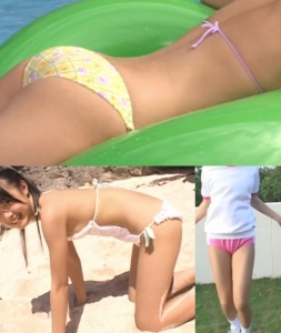 ビキニは少しミニっぽく、発育の途中であることを感じさせてくれます。
