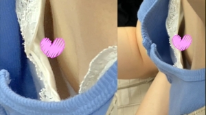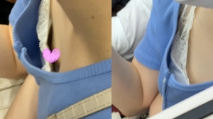 パカパカキャミソールの上からの眺め。 サイズが合っていなさそうで、豆型が見えちゃっています。