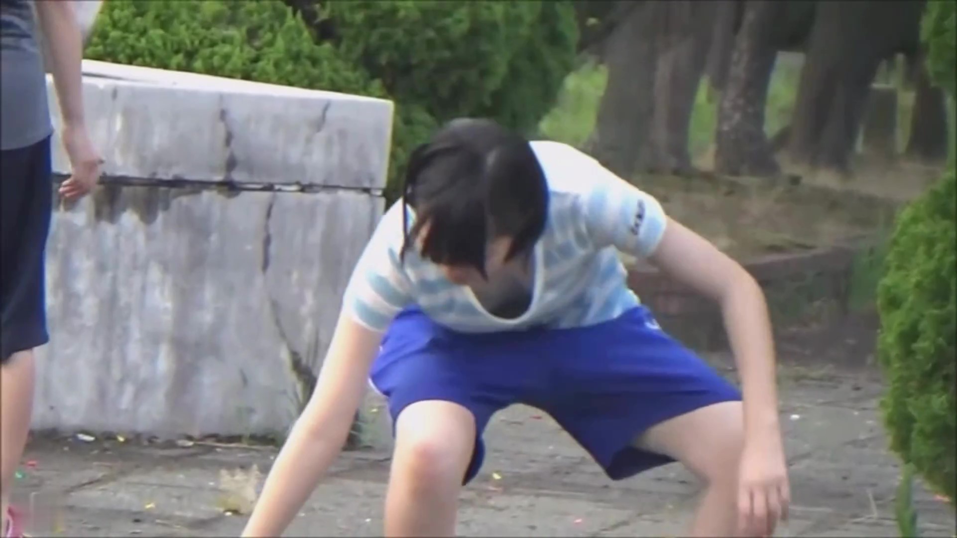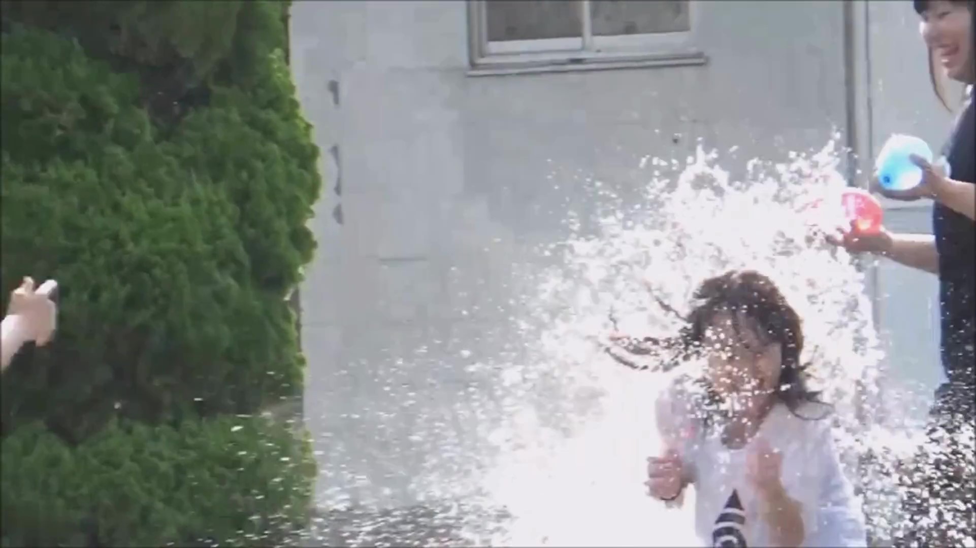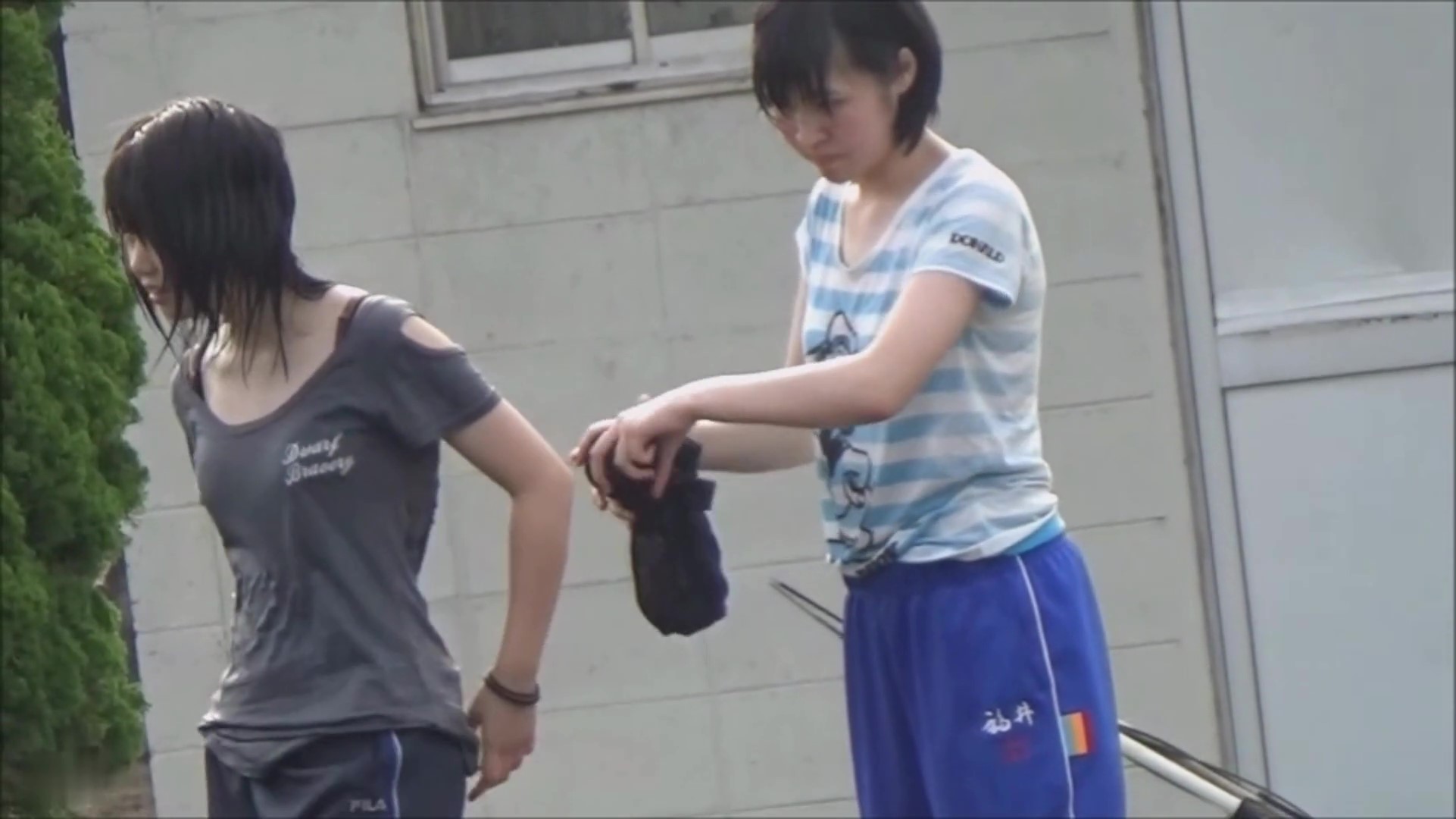 水風船を投げ合うJ〇の女の子。Tシャツの隙間から見える胸元にドキドキです!